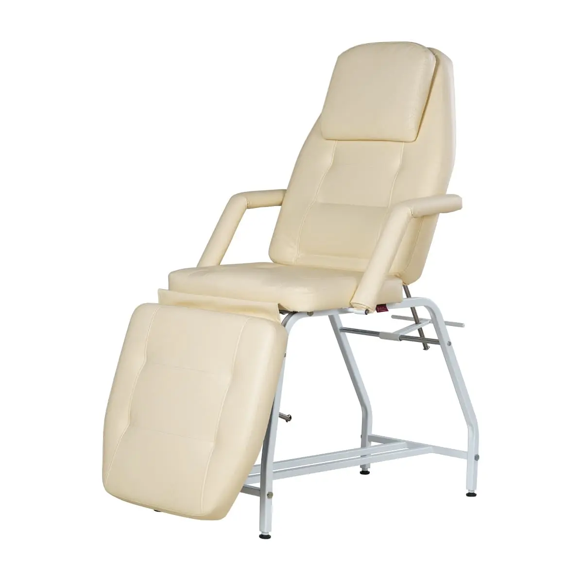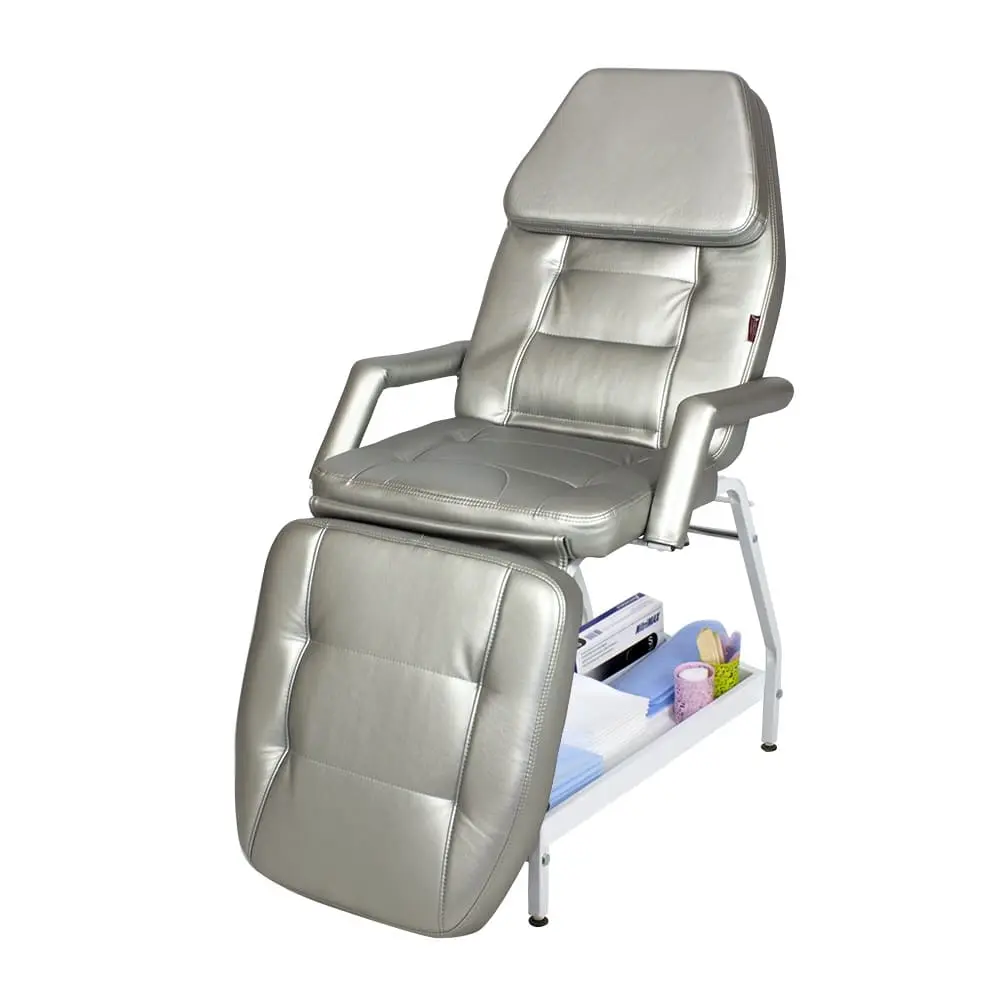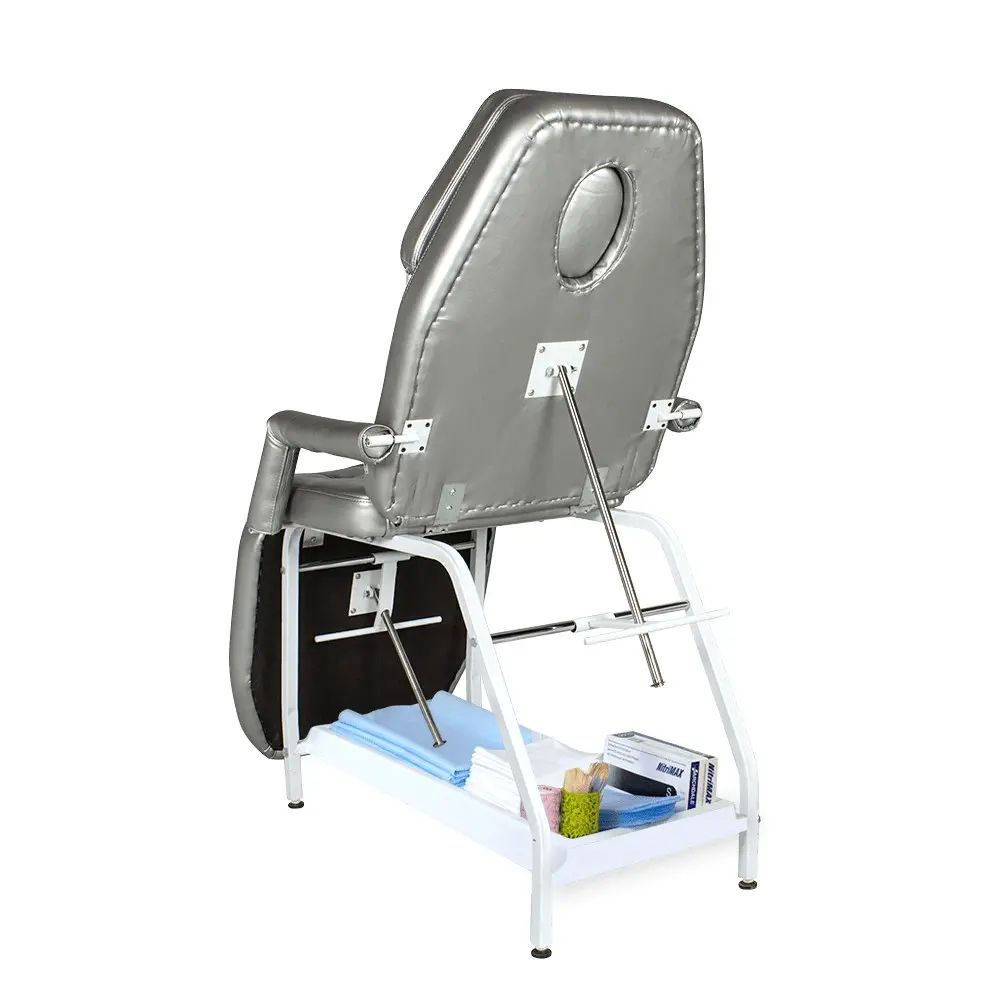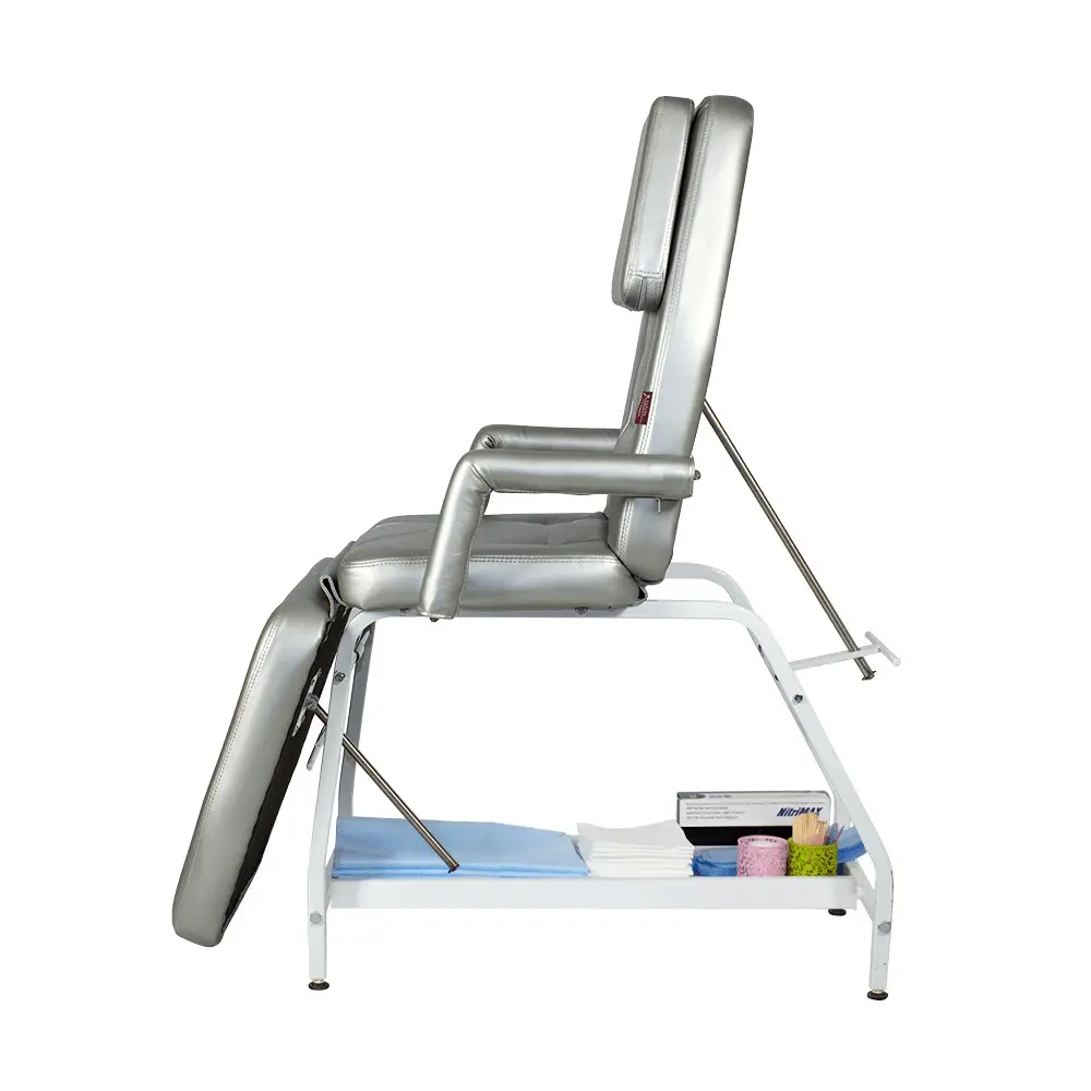При обустройстве кабинета оборудование должно гармонировать с палитрой интерьера, поэтому мы предлагаем купить косметологическую кушетку Релакс в одном из цветов складкой программы (белый матовый, серебро, слоновая кость), или заказать в другом цвете или комбинации цветов из каталога обивочных материалов. Практичная конструкция косметологической кушетки Релакс от магазина МЭДИСОН позволяет оказывать широкий спектр как косметологических, так и массажных услуг. В спинке имеется отверстие для лица. Положение спинки и ножной части регулируется механически.