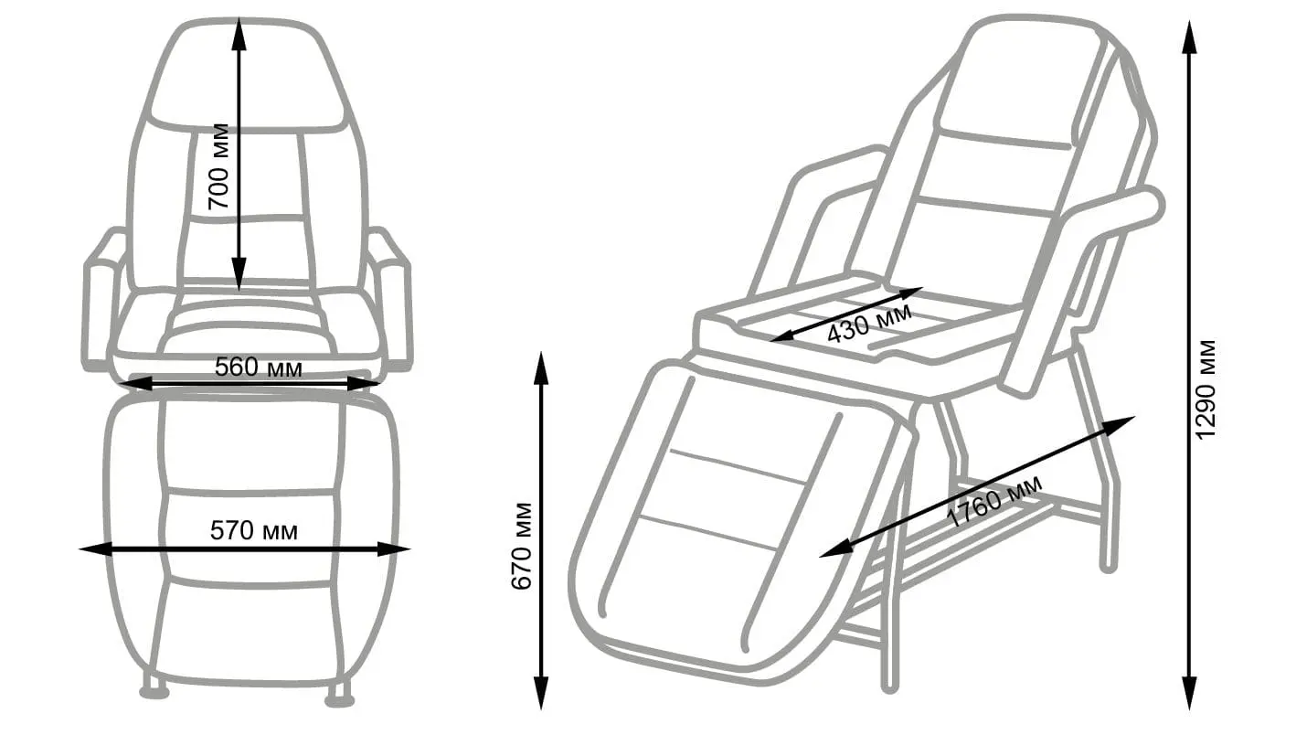 Съемные элементы: подлокотники, подушка под голову, закрывающая отверстие для лица.