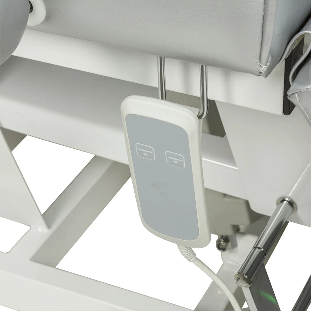 Комплектация: мягкие детали кушетки, подголовник, подлокотники, каркас на металлическом основании на подпятниках, электропривод (1 мотор) с пультом управления.