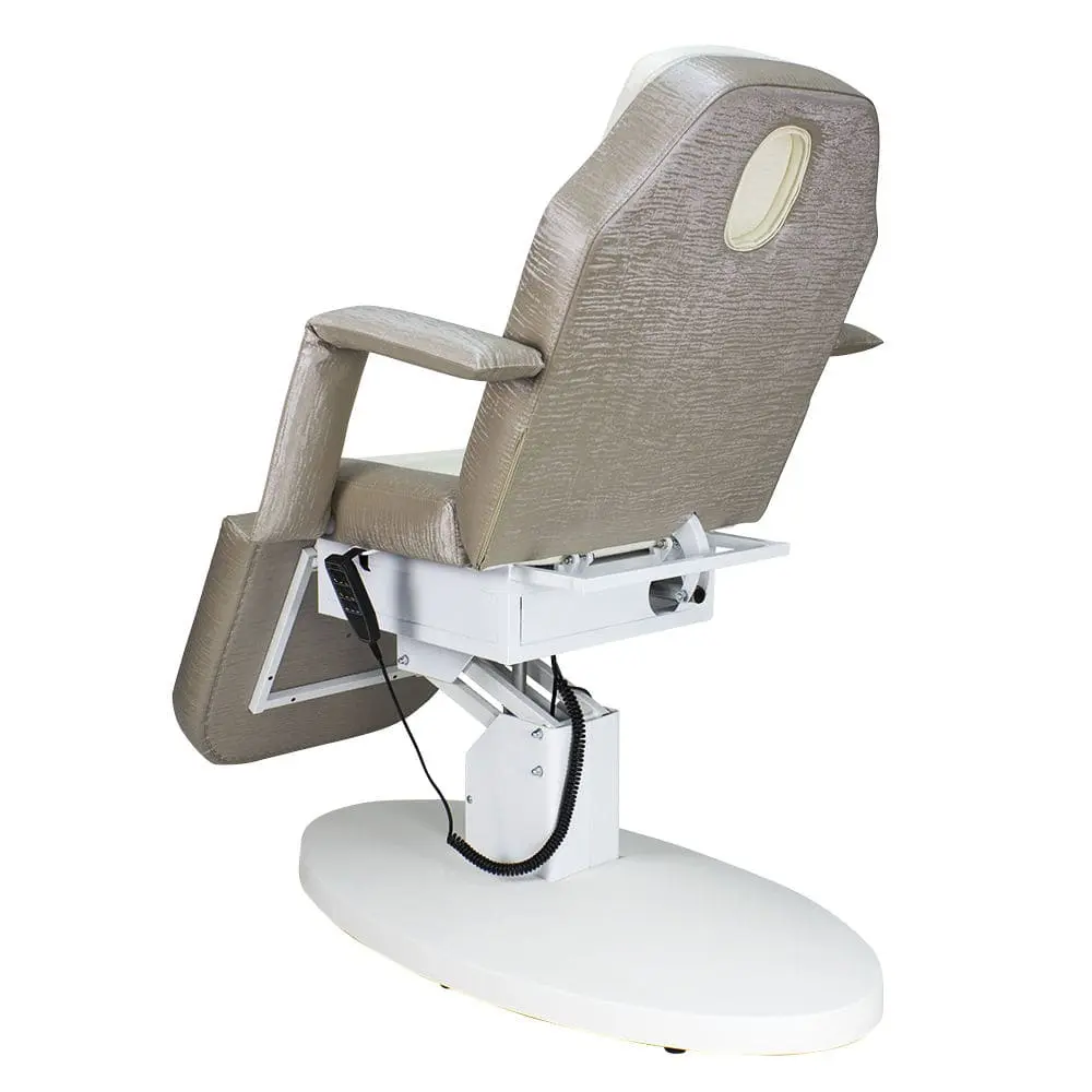 Кресло косметологическое Элегия-03 (Элегия-2) комплектуется тремя моторами электропривода, которые позволяют быстро и с комфортом для клиента менять положение мягких элементов. Пользуясь регулировками, мастер может трансформировать кресло в горизонтальное положение и использовать его в качестве косметологической или массажной кушетки. Подлокотники и подушка снимаются. Управление электроприводом осуществляется при помощи удобного пульта, который крепится к каркасу.