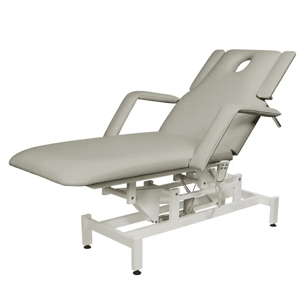 Комплектация: кушетка, подлокотники, съемная подушка, металлические элементы каркаса и основания, электропривод с двумя электромоторами и дистанционным пультом управления.