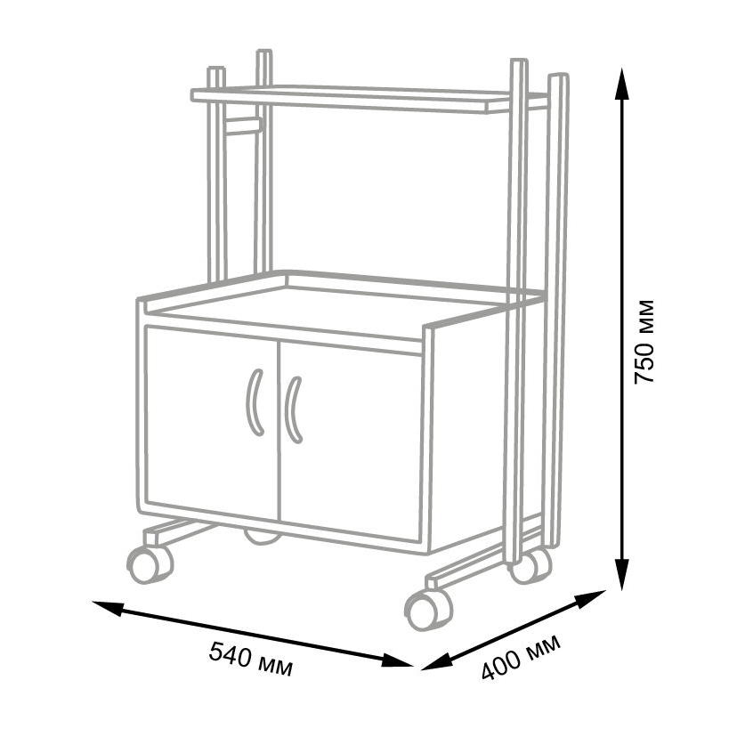 Комплектация: основа, полочка, шкафчик с дверками закрытого типа, колёса.