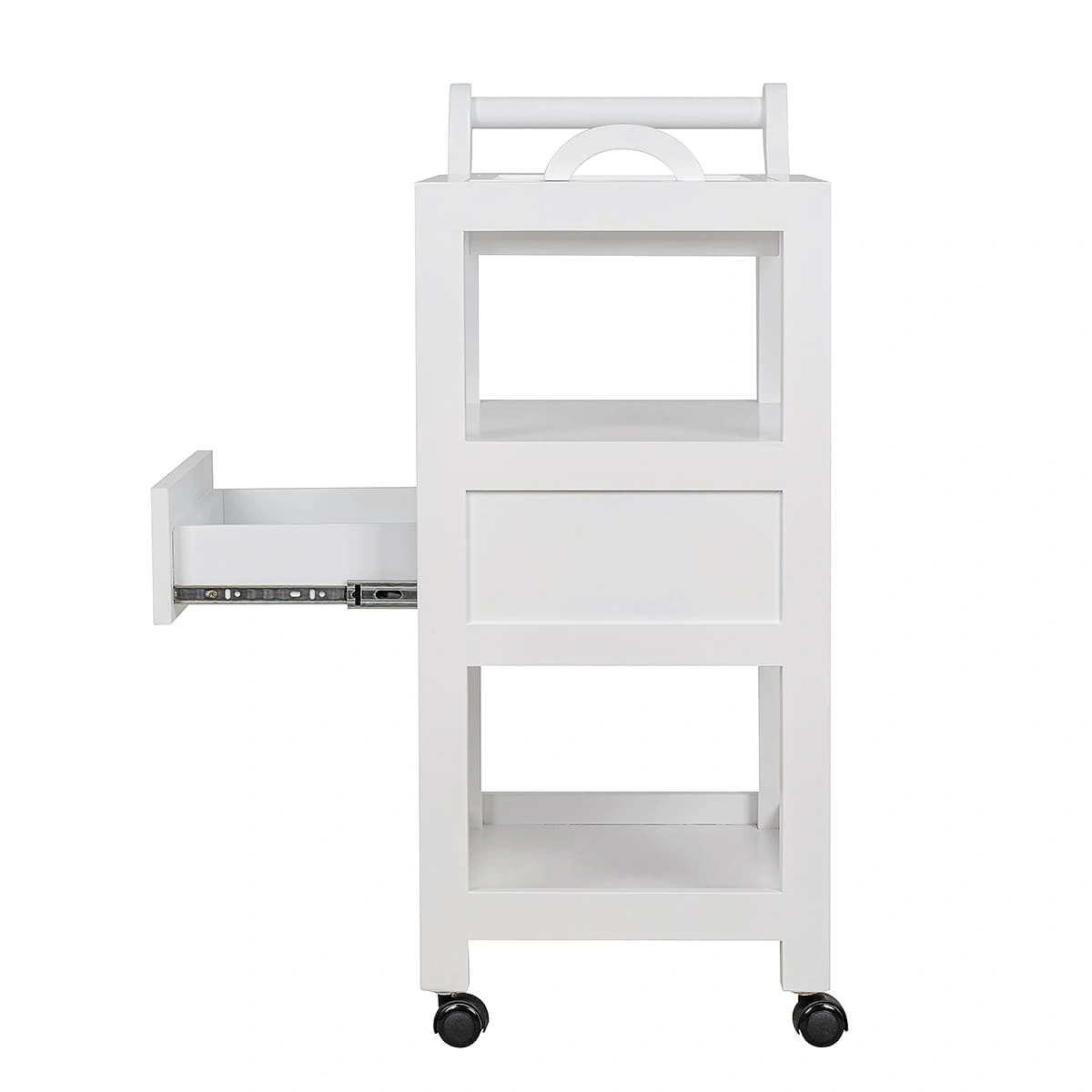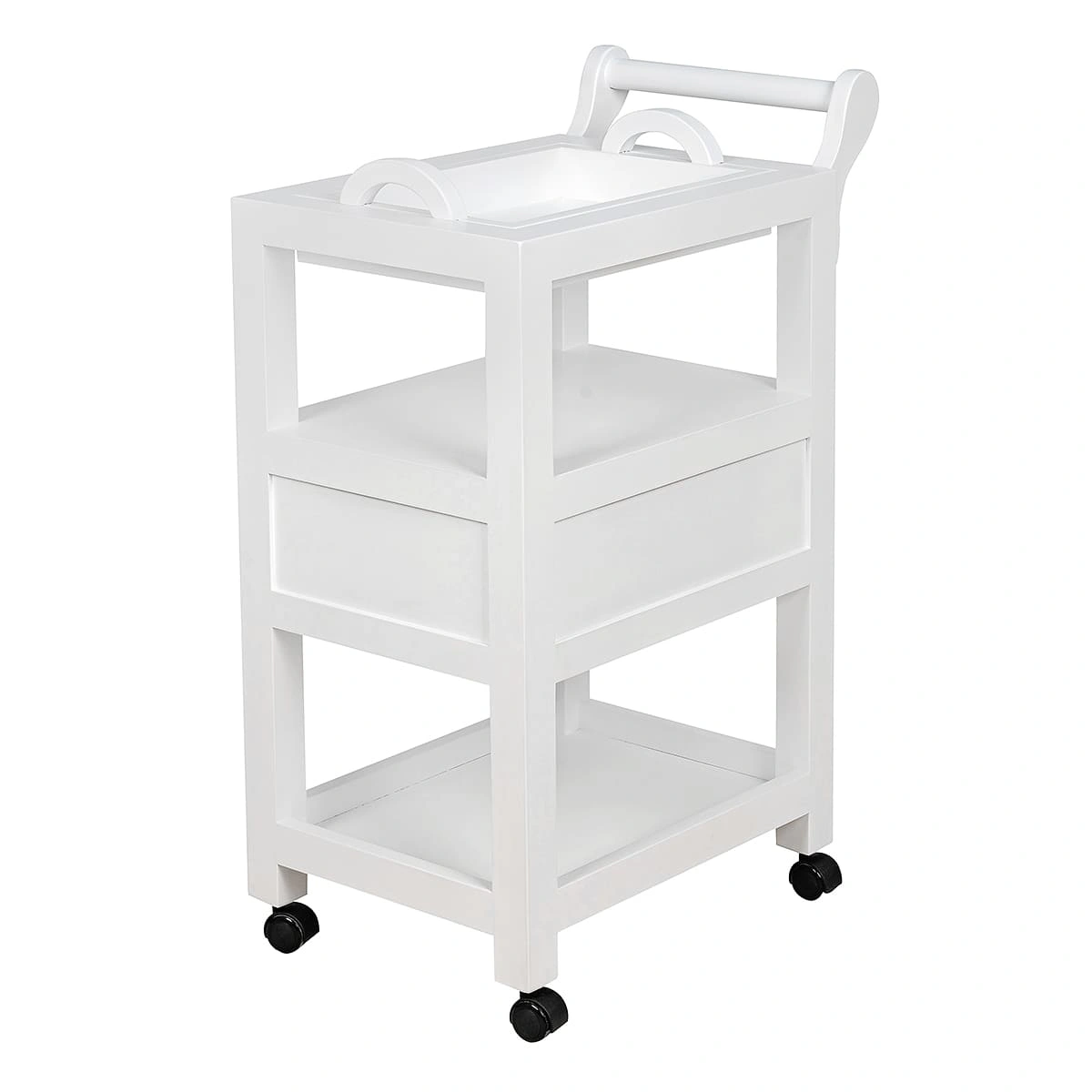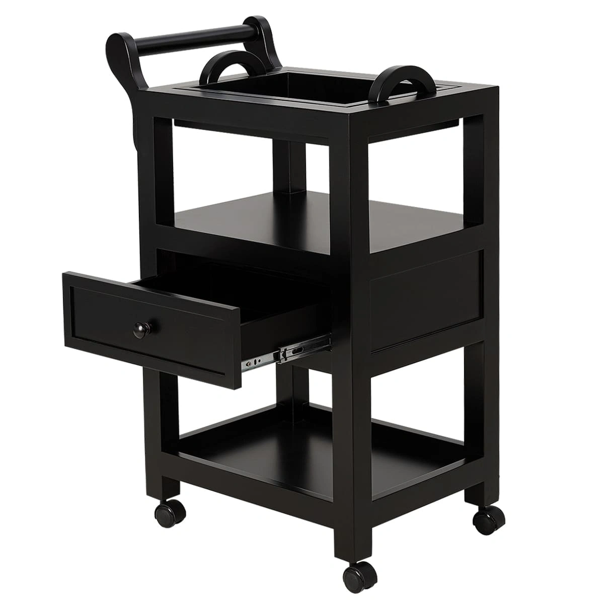 Верхняя полка оснащена съемным столиком с ручками, где можно хранить чаши и емкости, и при необходимости легко снять и почистить столик. Также на верхней полке находится отдельная удобная ручка, на которой можно разместить аксессуары, и с помощью которой можно легко переместить столик. Это делает его настоящей находкой для мастеров СПА-салонов. Его конструкция и функциональность словно созданы для проведения СПА-процедур. А посетители оценят стильный внешний вид.