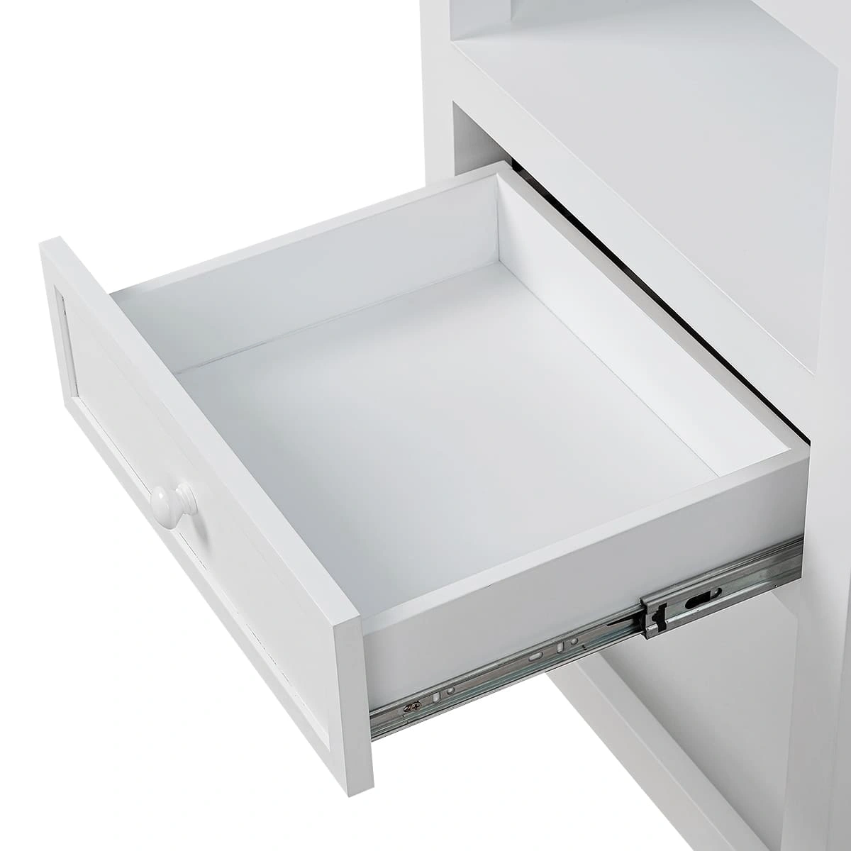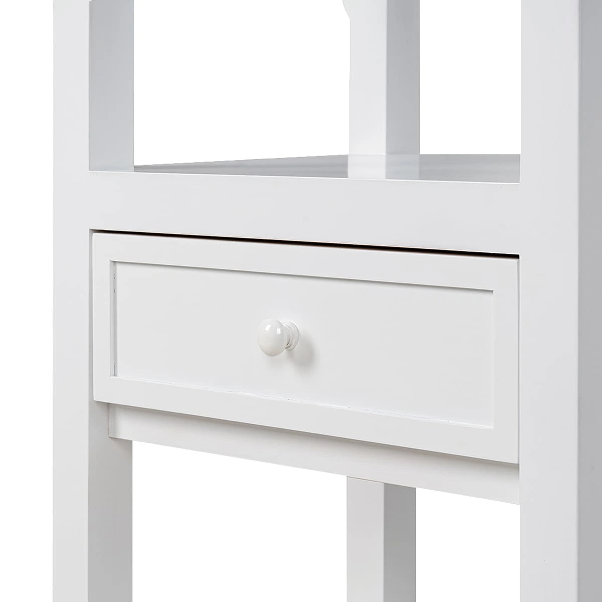Имея довольно компактные размеры, конструкция столика позволяет ему выполнять сразу множество функций. В закрытом выдвижном ящике можно хранить расходные материалы и мелкие аксессуары. Три открытые полки на разном уровне, верхняя и нижняя обрамлены бортиками со всех сторон, которые надежно защищают размещенные на них предметы от падения.