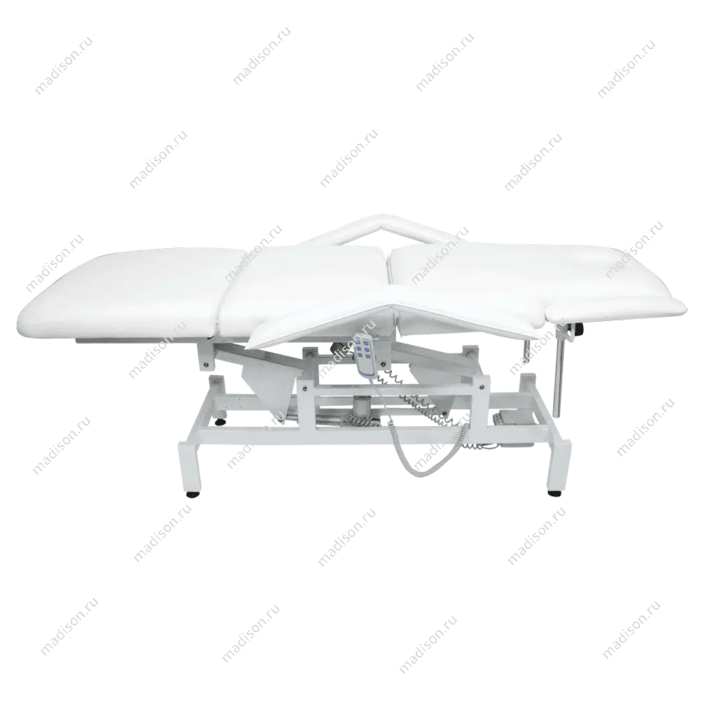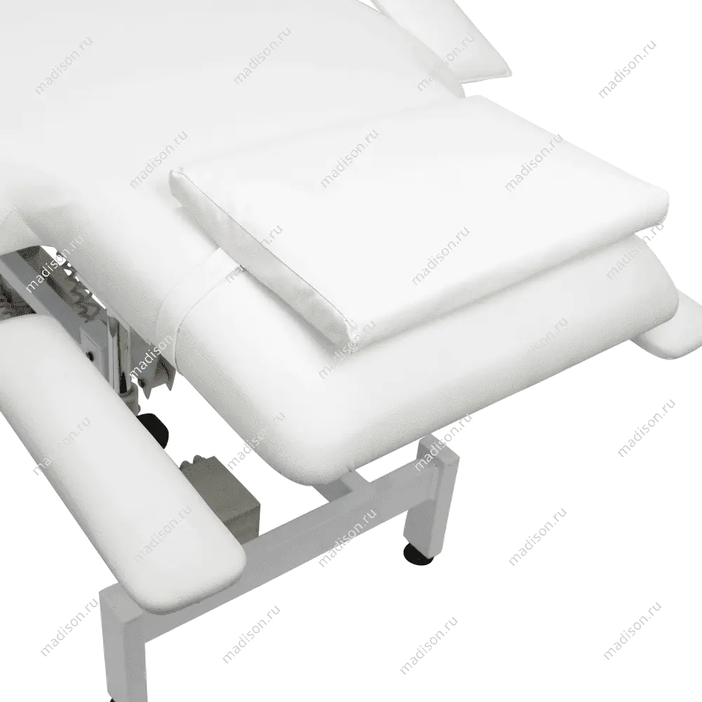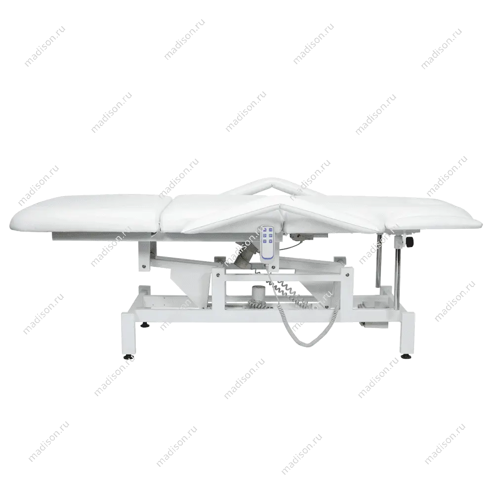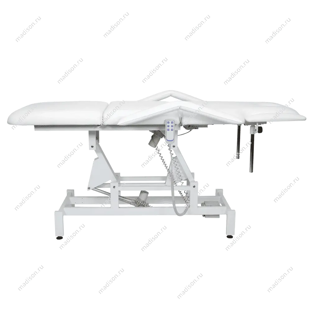 Кушетка массажная МД-849 (Элегия-3А) (электропривод, 3 мотора) – это профессиональное оборудование от компании МЭДИСОН. Она разработана для применения в массажном или косметологическом кабинете высокого уровня. Мягкая часть кушетки разделена на три сегмента: сиденье, спинка, элемент для ног. Это значительно повышает комфорт при использовании и обеспечивает необходимую функциональность во время работы. В спинке есть специальный вырез для лица. Для удобного расположения рук по время массажа предусмотрены навесные подлокотники, регулируемые по высоте.