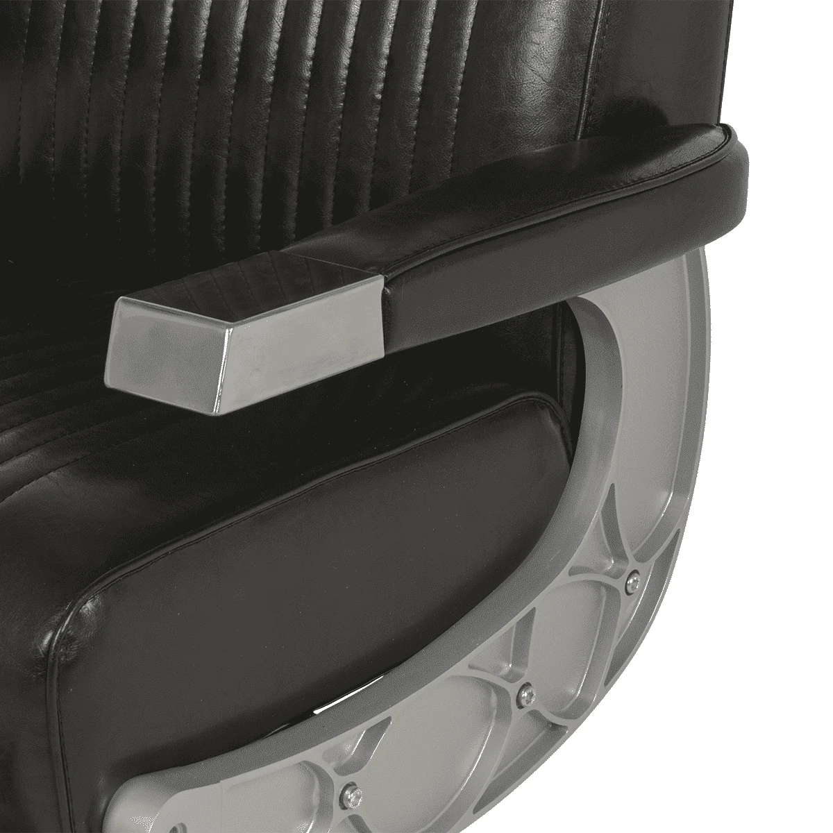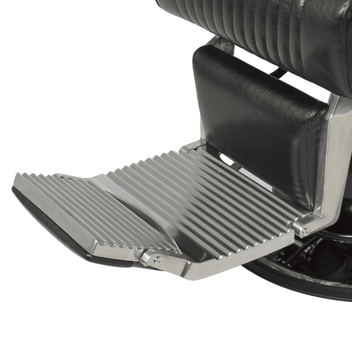 В комфортабельном кресле учтены все нюансы, которые помогут клиенту расслабиться, а мастеру комфортно работать. Благодаря удобному подголовнику клиент сможет откинуть голову во время бритья опасной бритвой. Для рук есть широкие подлокотники. Чтобы ноги клиента не находились в напряженном состоянии в кресле предусмотрена широкая подножка.