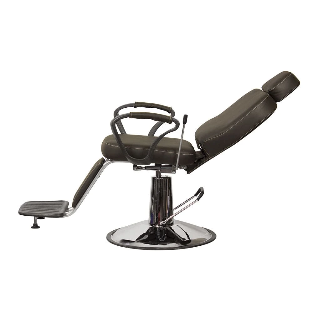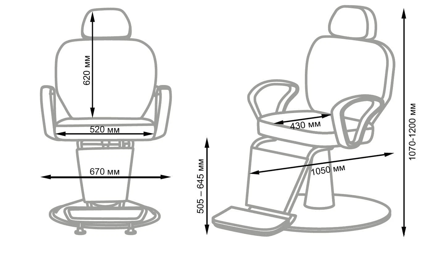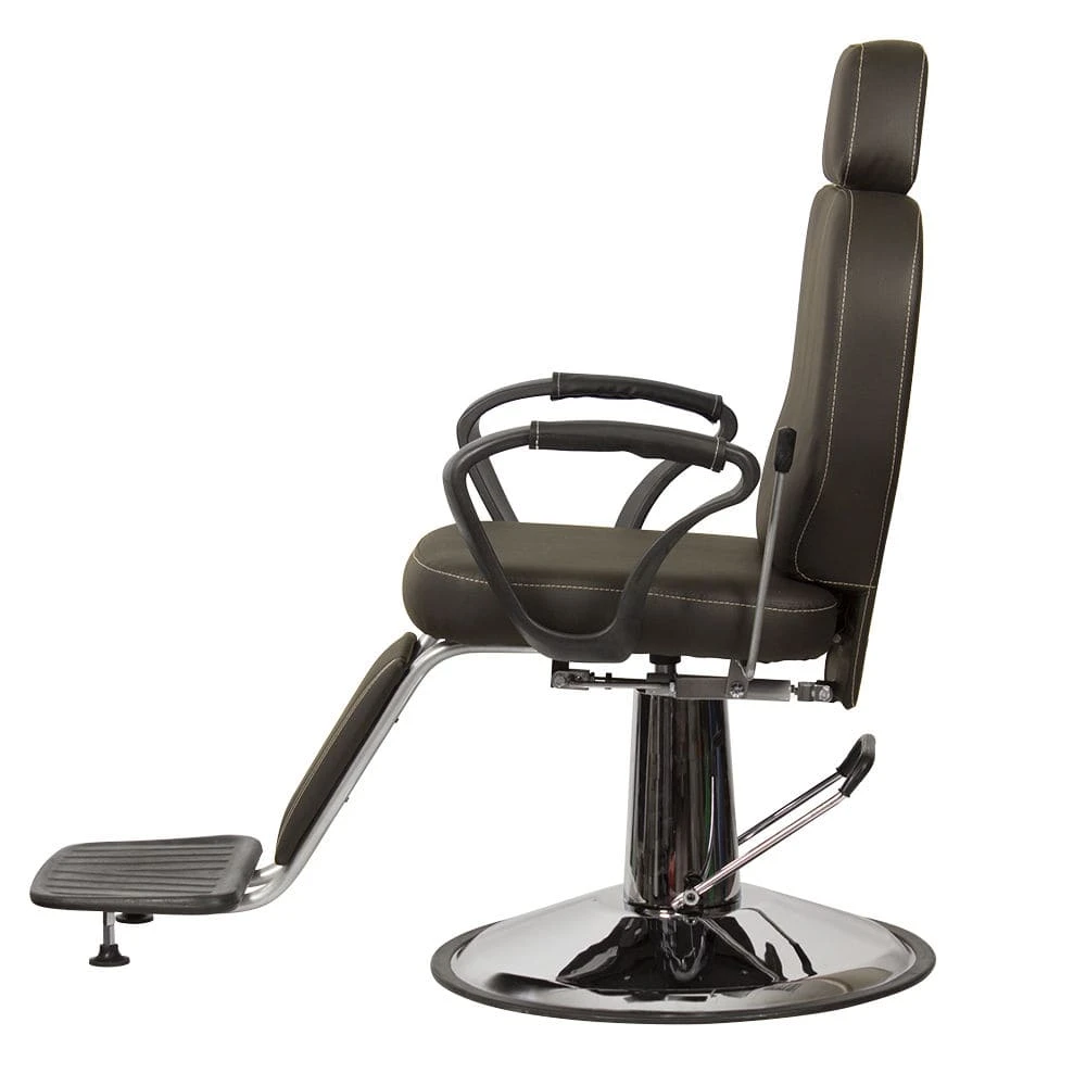 Продуманное дизайнерское решение позволяет оказывать услуги по уходу за волосами и бородой, а также делает кресло barber стильной составляющей интерьера. Для удобного расположения клиента любого роста предусмотрена подножка и выдвижной подголовник. По бокам сиденья установлены эргономичные подлокотники из прочного черного пластика. Подъем кресла осуществляется при помощи надежного гидравлического механизма, а для наклона спинки установлен газ-патрон.