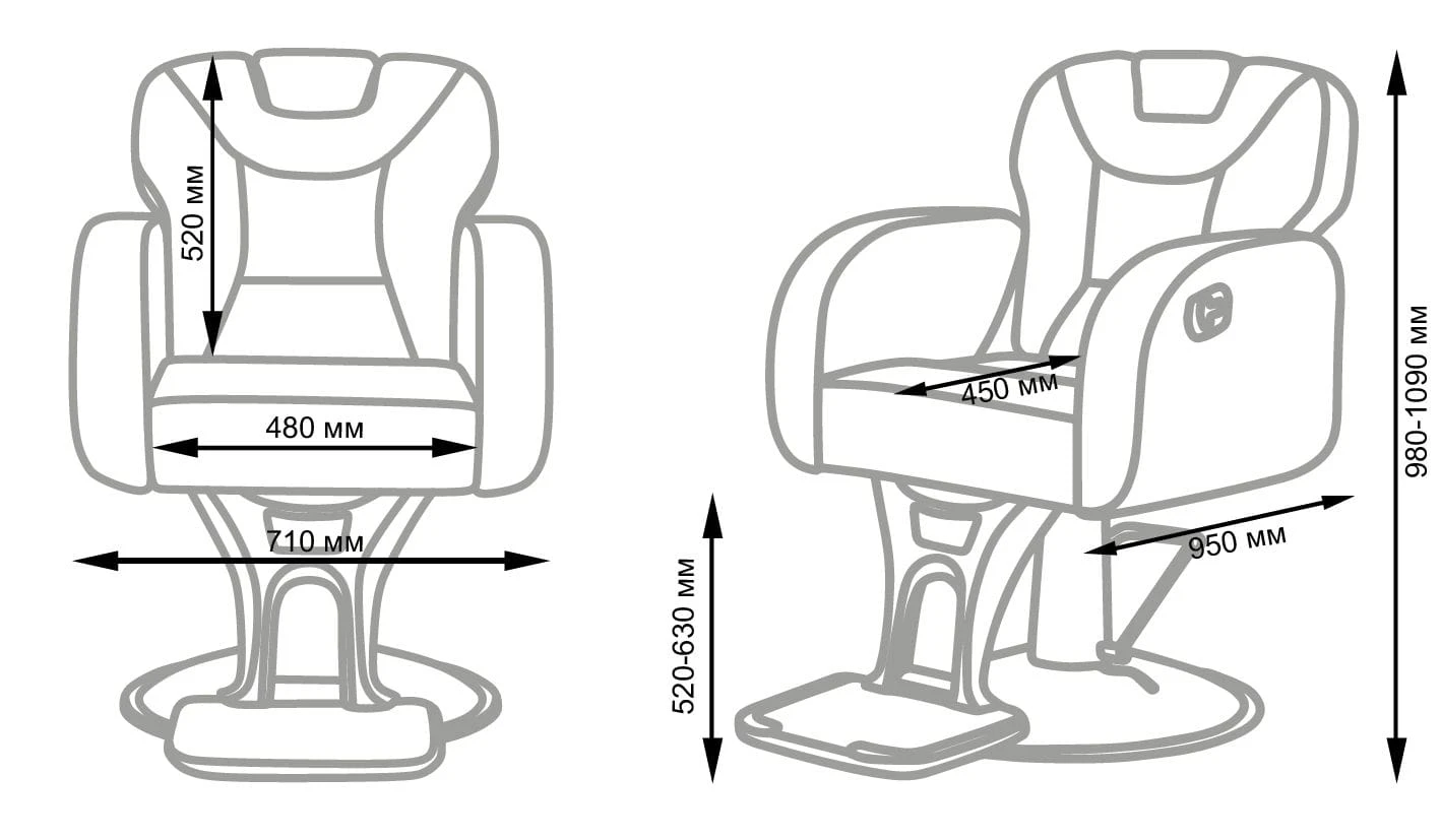 Комплектация: основание-диск, каркас, массивное кресло, гидравлический подъемник, подножка, подголовник.