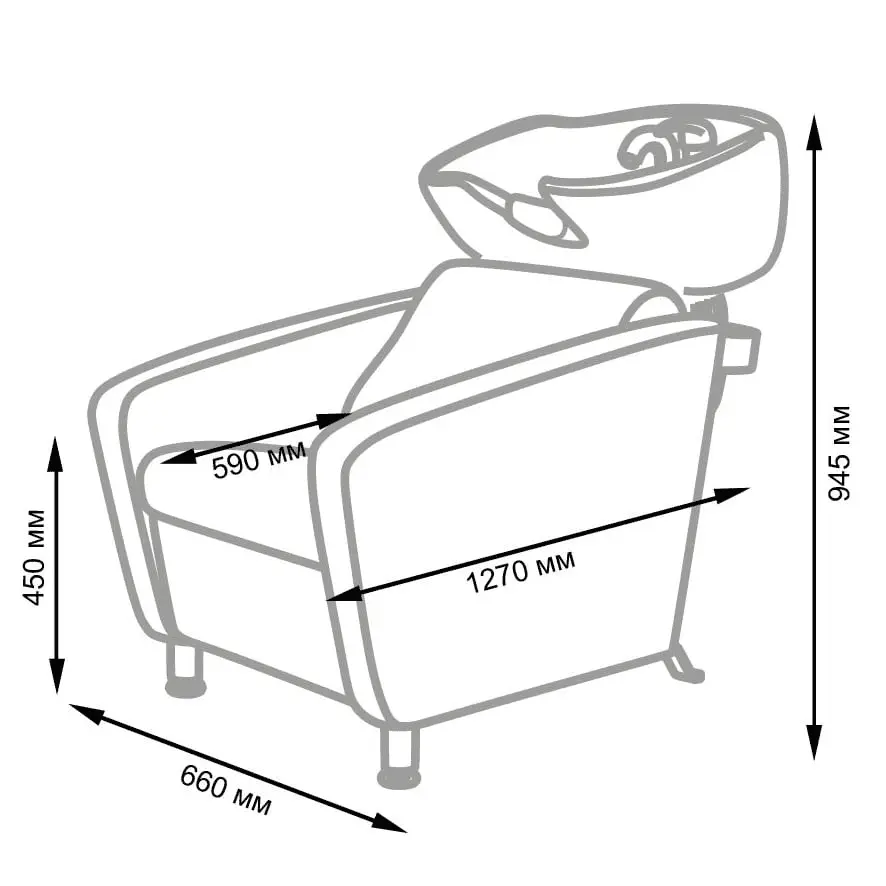Характеристики мойки для барбершопа МД-123 без регулировки ножной части:
