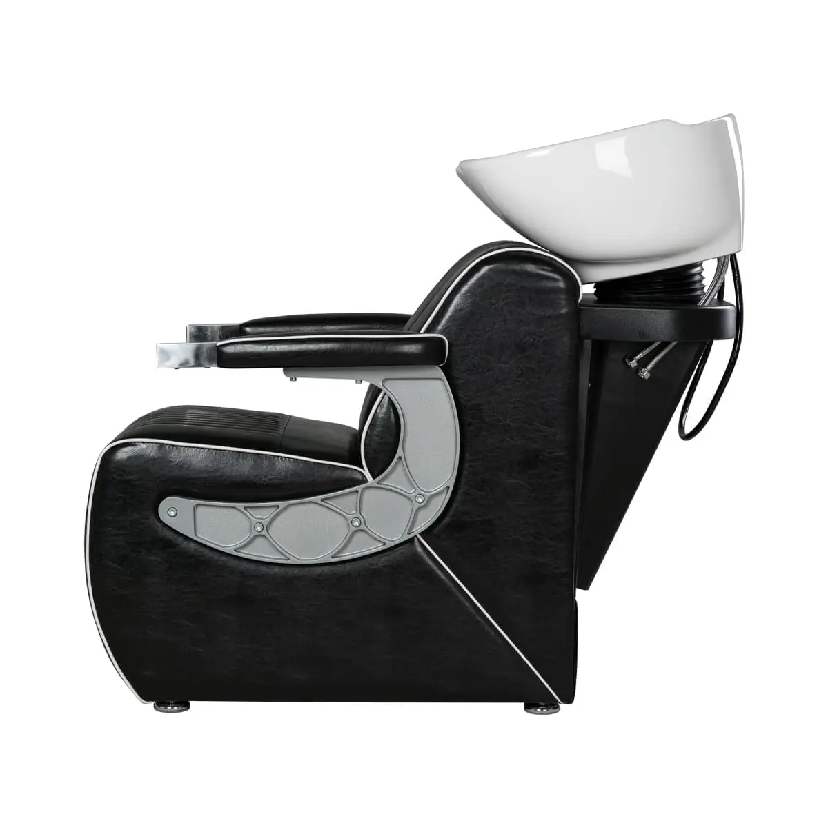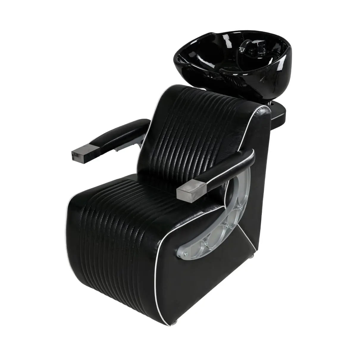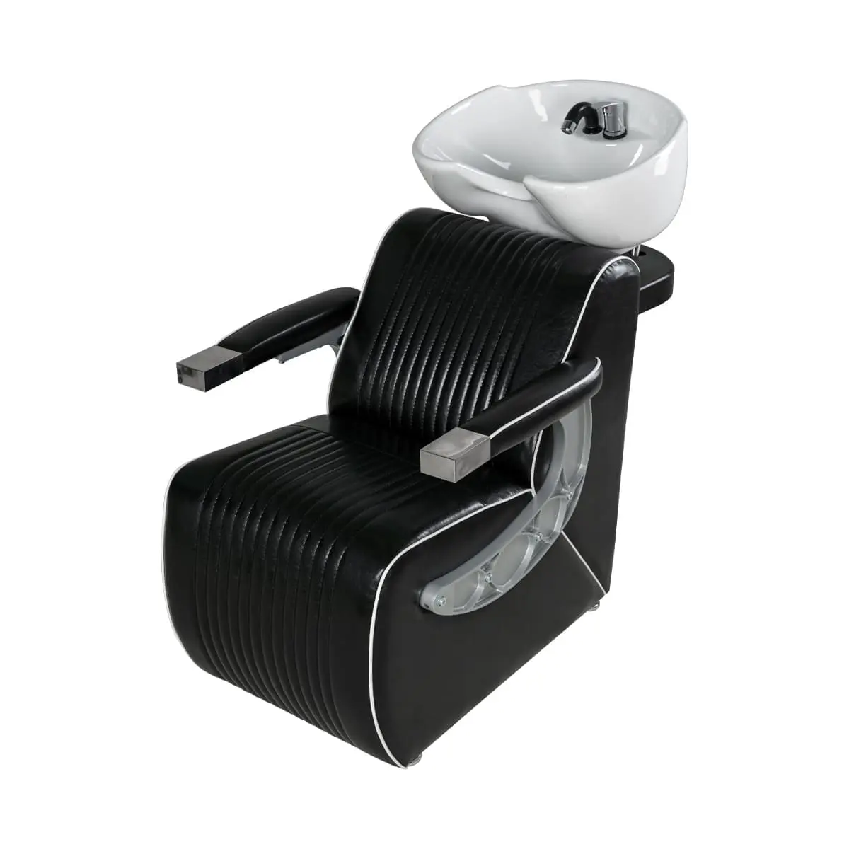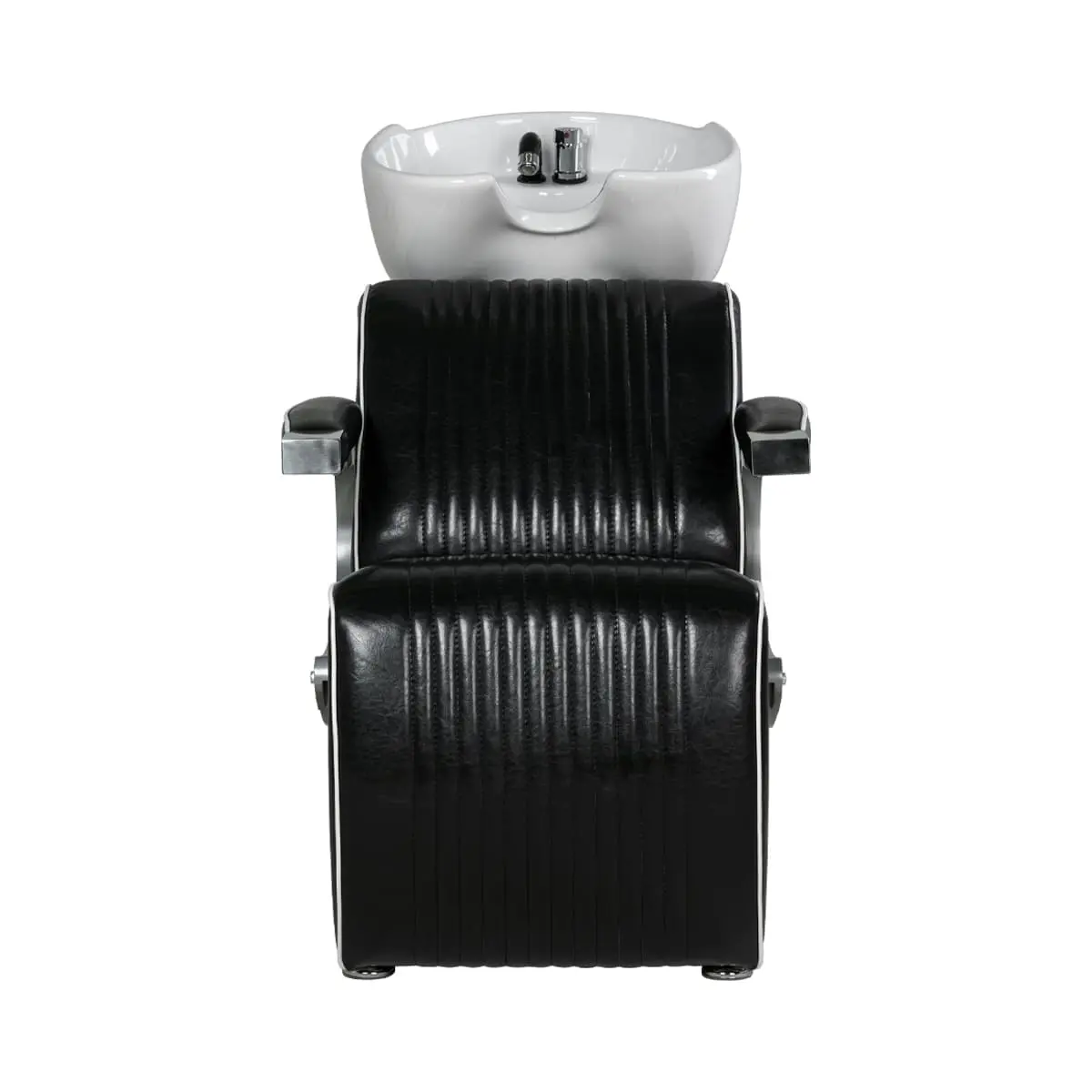 Мойка для барбершопа Челленджер отличается стильным дизайном. Оригинальная форма кресла, черная керамическая раковина, обивка из экокожи с рифлением – все это смотрится солидно и стильно. Конструкция мойки максимально продумана для удобства клиента и мастера. Поролоновый наполнитель долго держит форму и не теряет свойств на протяжении всего срока эксплуатации. Экокожа устойчива к воздействию влаги, поэтому ее можно очищать от загрязнений обычной влажной тряпкой.