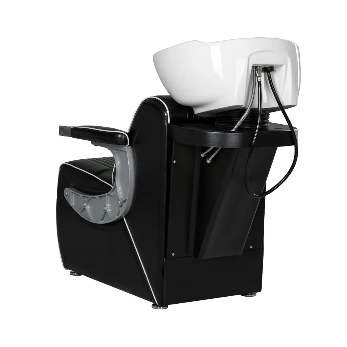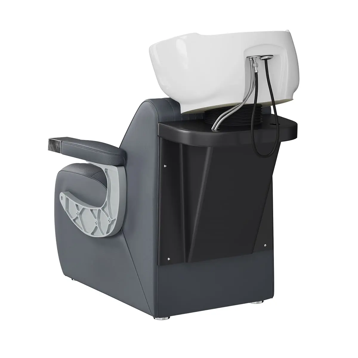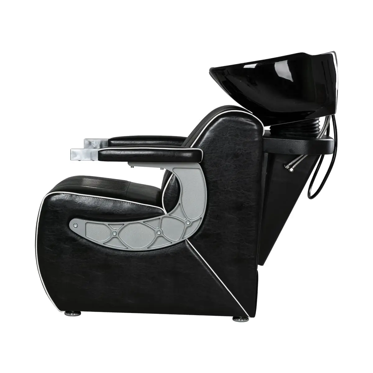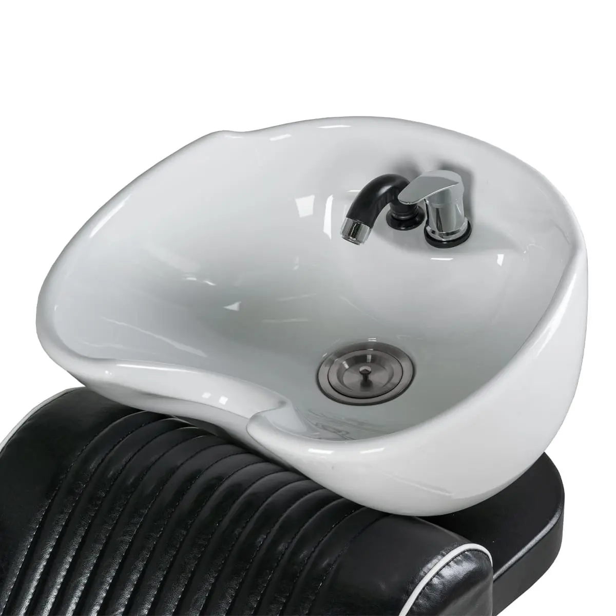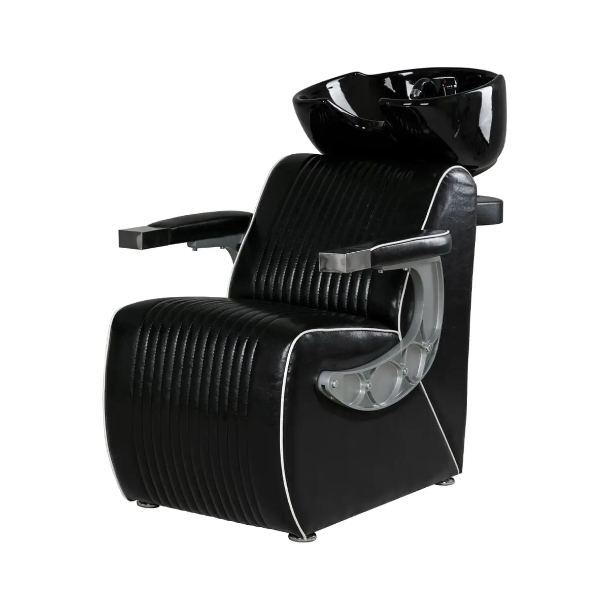 Мойка для барбершопа Челленджер отличается стильным дизайном. Оригинальная форма кресла, черная керамическая раковина, обивка из экокожи с рифлением – все это смотрится солидно и стильно. Конструкция мойки максимально продумана для удобства клиента и мастера. Поролоновый наполнитель долго держит форму и не теряет свойств на протяжении всего срока эксплуатации. Экокожа устойчива к воздействию влаги, поэтому ее можно очищать от загрязнений обычной влажной тряпкой.