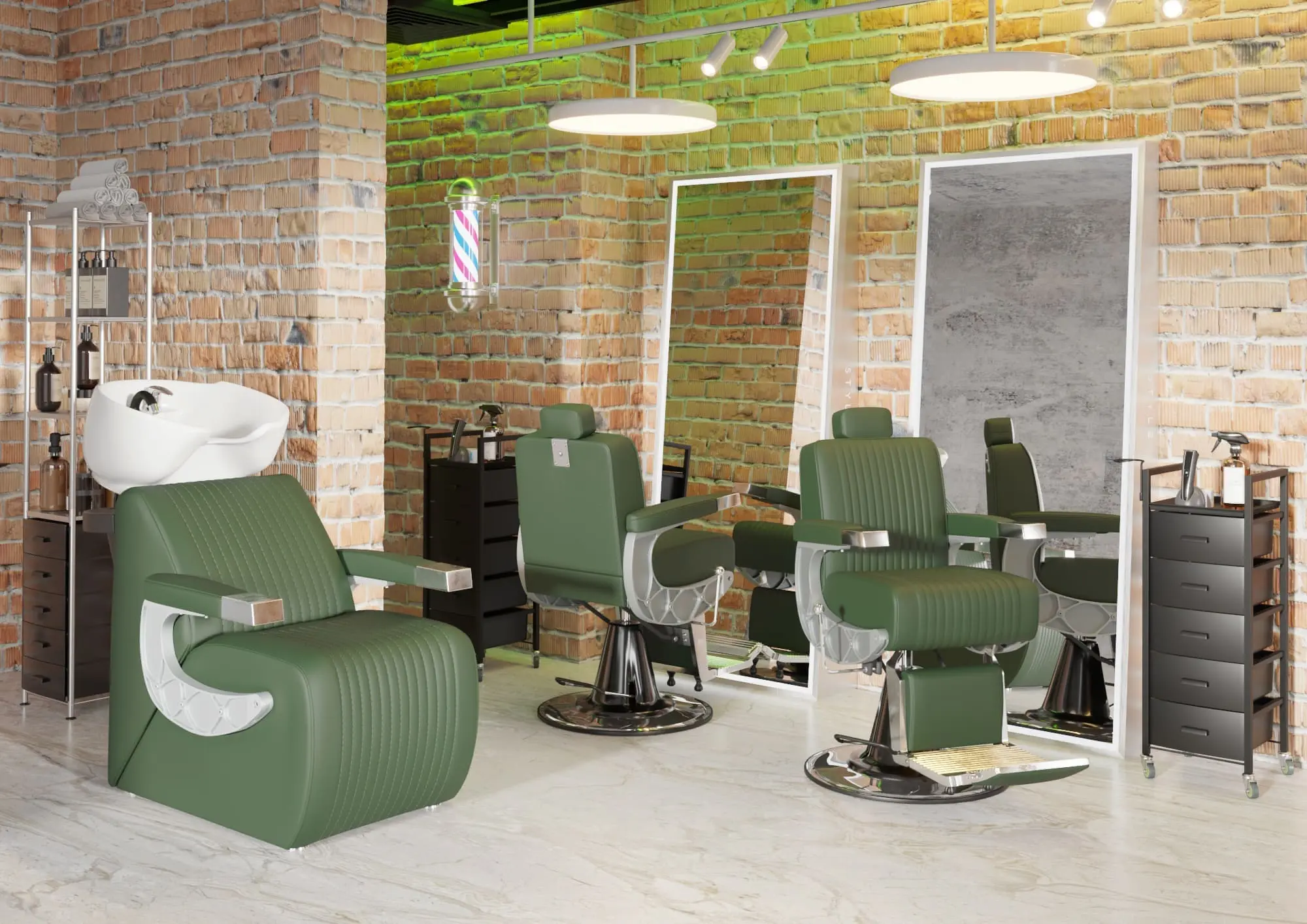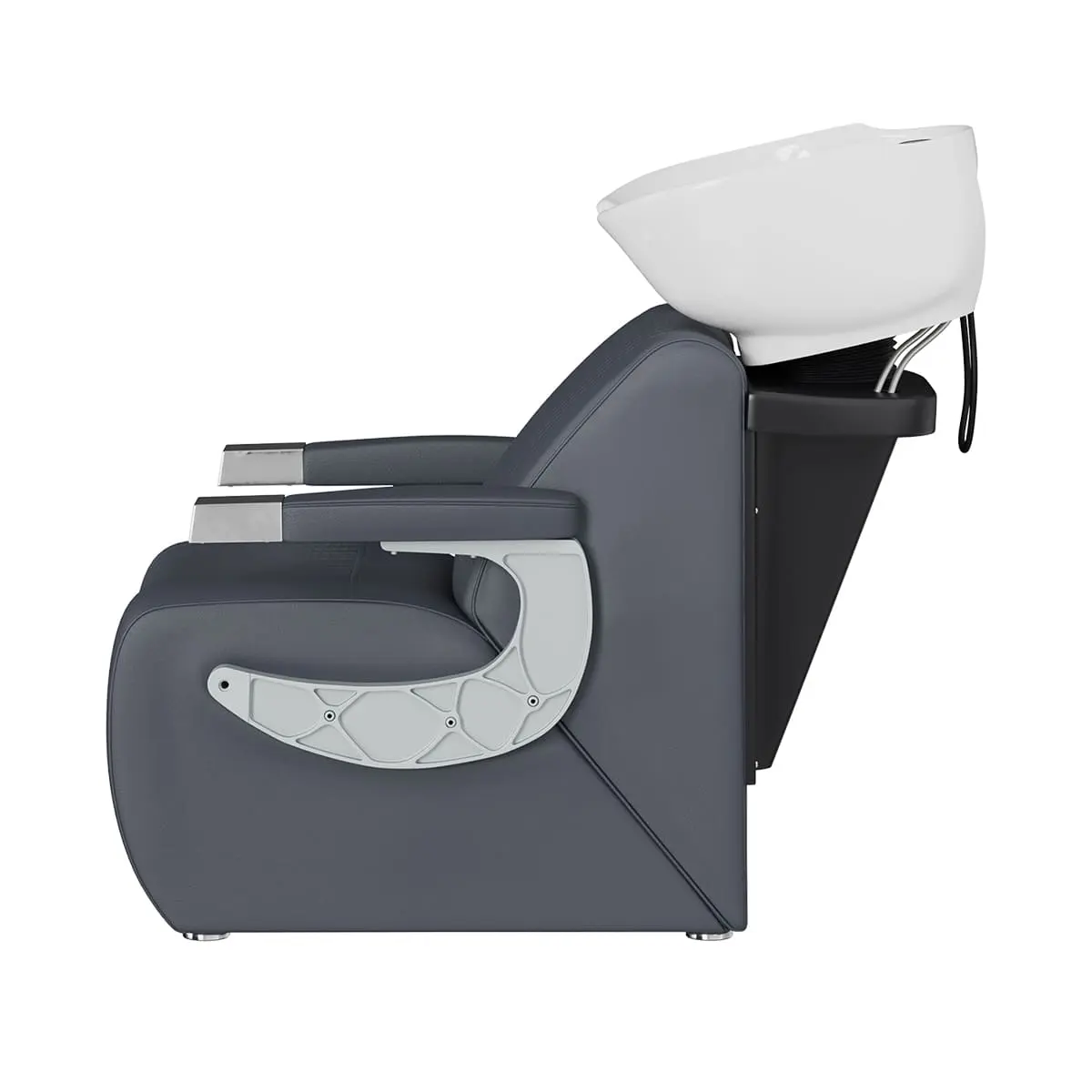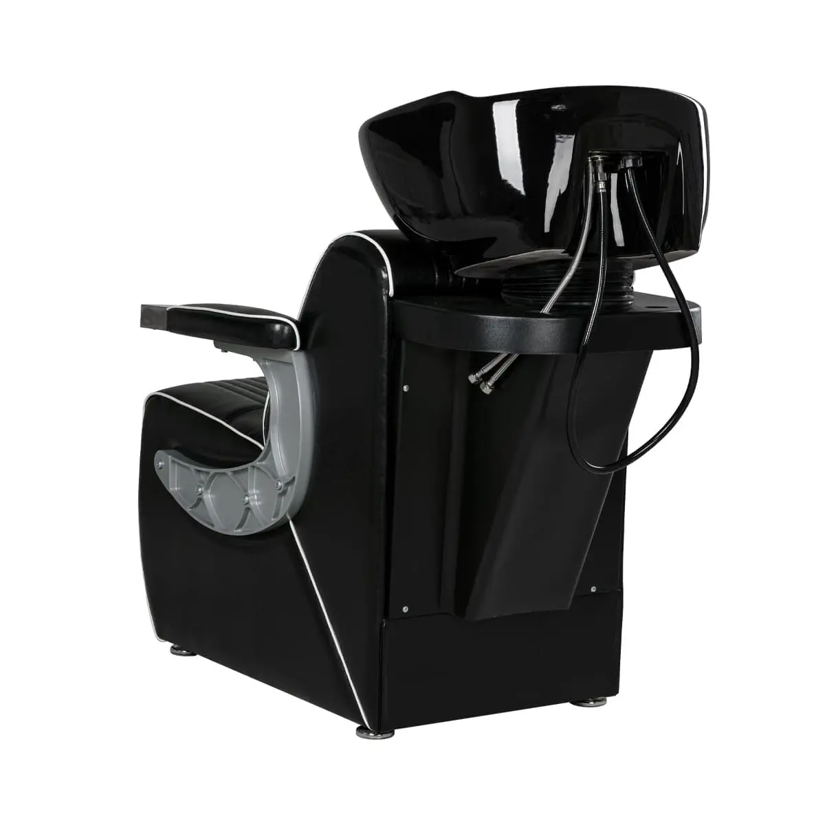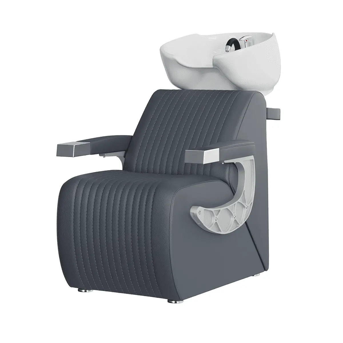 Мойка для барбершопа Челленджер отличается стильным дизайном. Оригинальная форма кресла, черная керамическая раковина, обивка из экокожи с рифлением – все это смотрится солидно и стильно. Конструкция мойки максимально продумана для удобства клиента и мастера. Поролоновый наполнитель долго держит форму и не теряет свойств на протяжении всего срока эксплуатации. Экокожа устойчива к воздействию влаги, поэтому ее можно очищать от загрязнений обычной влажной тряпкой.