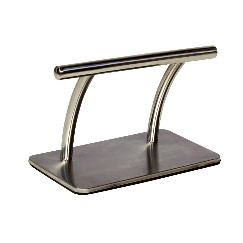 Для производства подставки применяется прочный хромированный металл, устойчив к воздействию воды и дезинфицирующих средств. Защитное хромированное покрытие предотвращает образование коррозии и не боится механического воздействия, благодаря чему эта подставка прочная и долговечная. Устойчивость данного аксессуара обеспечивает широкая площадка из хромированного металла. Она имеет прямоугольную форму с закругленными углами. Нижняя часть площадки оснащена специальной пластиной для предотвращения скольжения подставки и защиты напольного покрытия от повреждений. Подставка под ноги 03 хром от магазина МЭДИСОН оптимально сочетается с парикмахерскими креслами и оборудованием, у которого присутствуют элементы из хромированного металла. Подставка имеет удобные для клиента размеры: высота 210 мм / ширина 320 мм