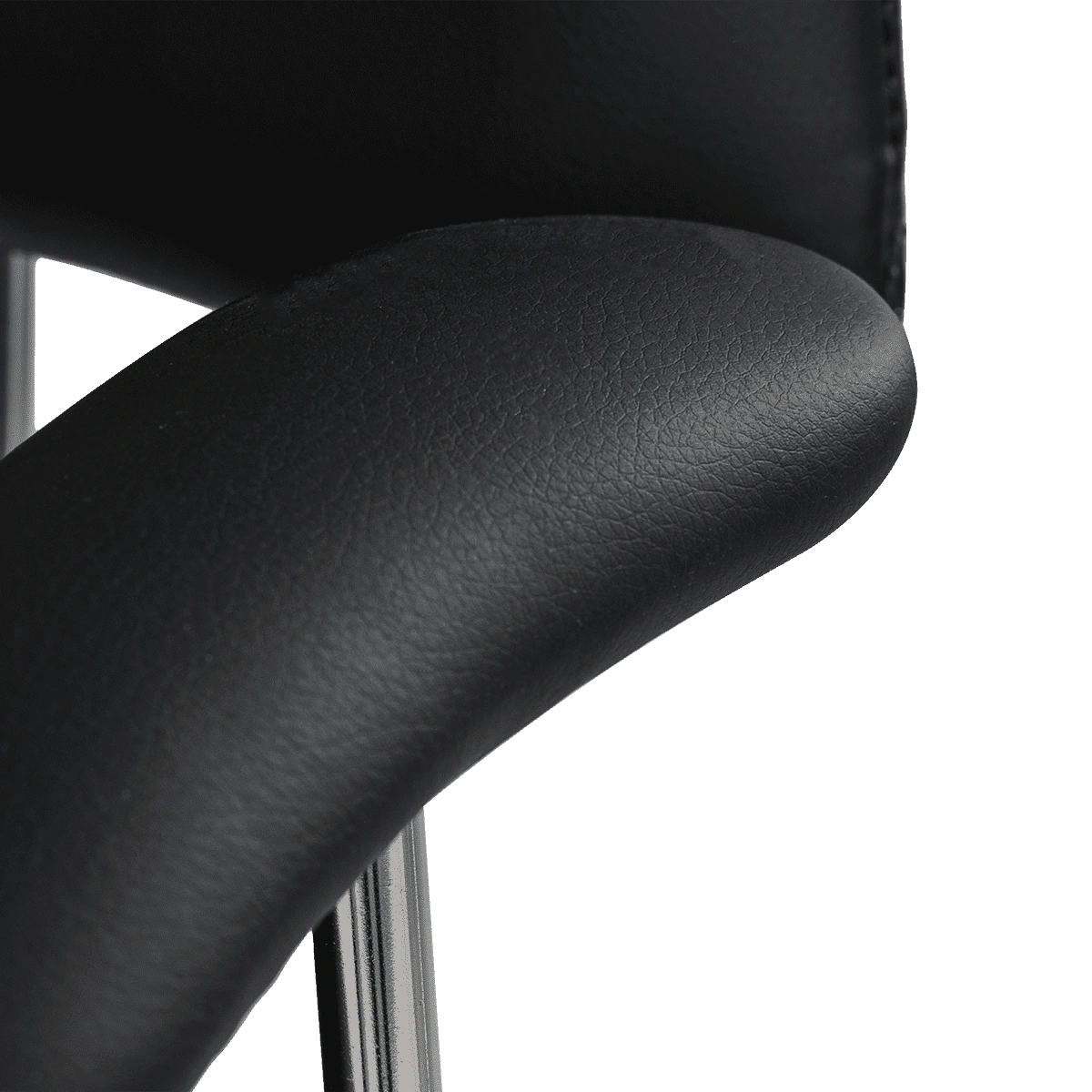 Каркас, подлокотники и ножная часть выполнены из прочной стали. Основание круглой формы имеет резиновую накладку, что предотвратит скольжение и сохранит напольное покрытие. Хромирование металлических элементов защитит от влияния коррозии и влаги.