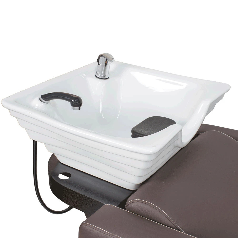 Мойка оснащена белой керамической раковиной средней глубины, укомплектованной смесителем и удобным душиком. Использование этой мойки придаст шарма и уникальности Вашему салону, и Вы сможете применять ее для полного комплекса услуг по уходу за волосами: