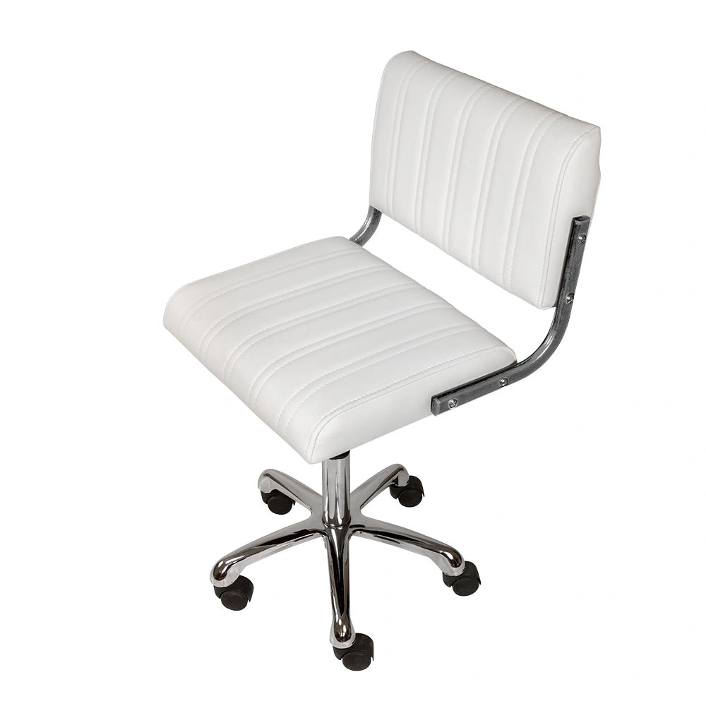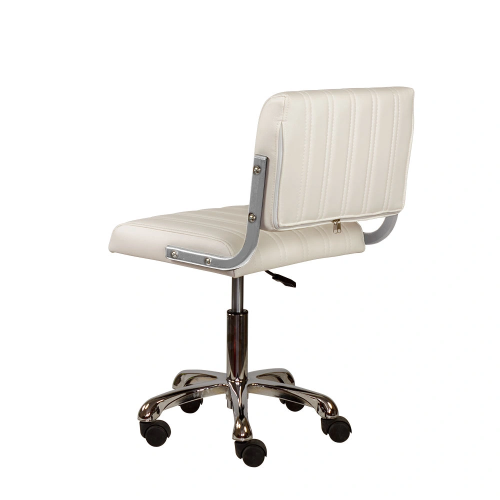 Обивка стула мастера – экокожа. Материал прочный, гладкий и приятный на ощупь. За счет своей структуры экокожа устойчива к истиранию и царапинам. Благодаря широкому выбору цветовых решений можно подобрать стул мастера для любого интерьера салона красоты. В качестве наполнителя использован эластичный поролон, не оставляющий вмятин на поверхности после использования.