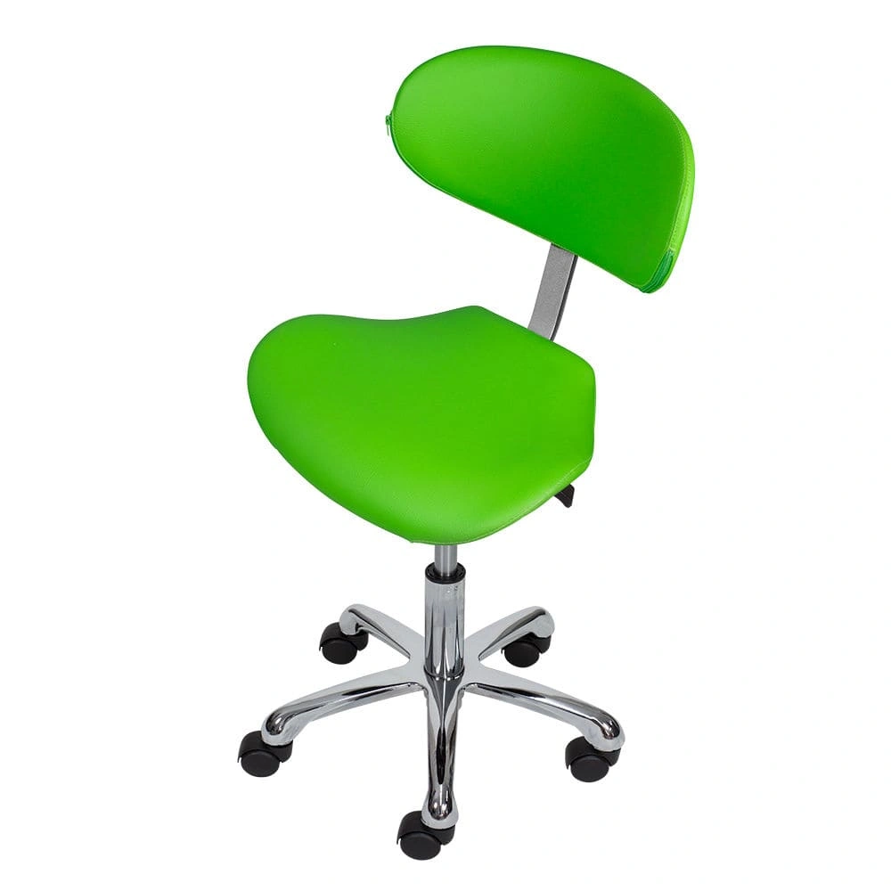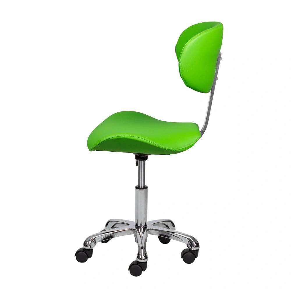 Благодаря сидению в форме седла уменьшается нагрузка на позвоночник и межпозвоночные диски, а также отсутствует давление на заднюю поверхность бедер. Удобная спинка отвечает за поддержку правильной осанки. С таким стулом для мастера значительно снимется напряжение в спине и появится возможность отдохнуть во время напряженного рабочего дня. Благодаря маневренным колесам стул можно перемещать в любую точку салона, не вставая с него. Надежный пневматический подъемник поможет выбрать оптимальную высоту сидения для комфортной работы.