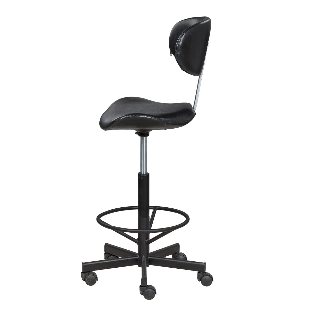 Высокий стул мастера Кейси с опорой для ног создан, чтобы предотвратить усталость во время длительных процедур.
