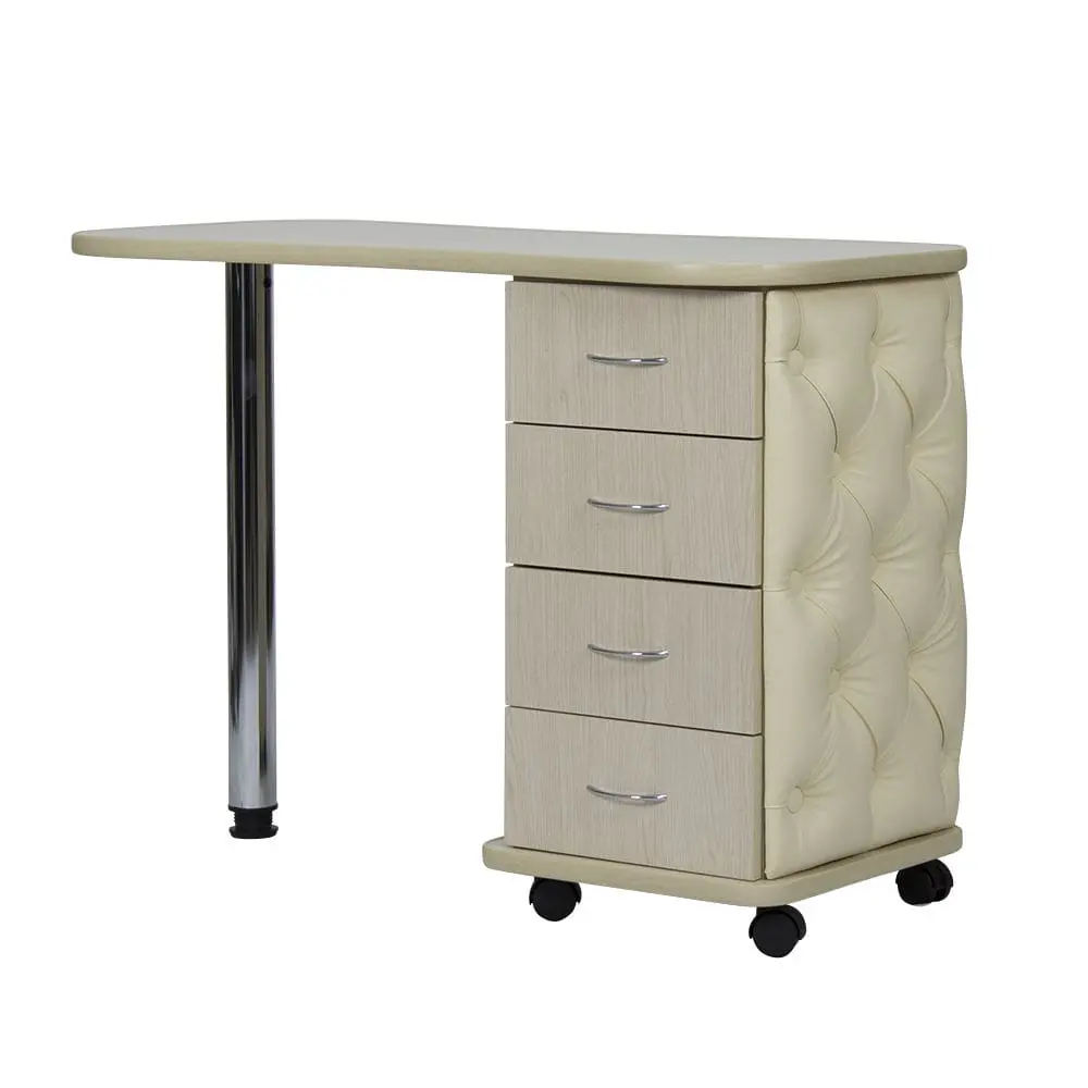 Комплектация: столешница, тумба, четыре выдвижных ящика, стальная ножка, колеса.