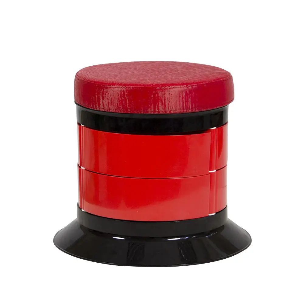 Удобную посадку обеспечивает мягкое сидение. Пуфик дополнен практичной деталью – тумбой из шести ящиков. Здесь мастер сможет держать приспособления, которые всегда должны быть под рукой.