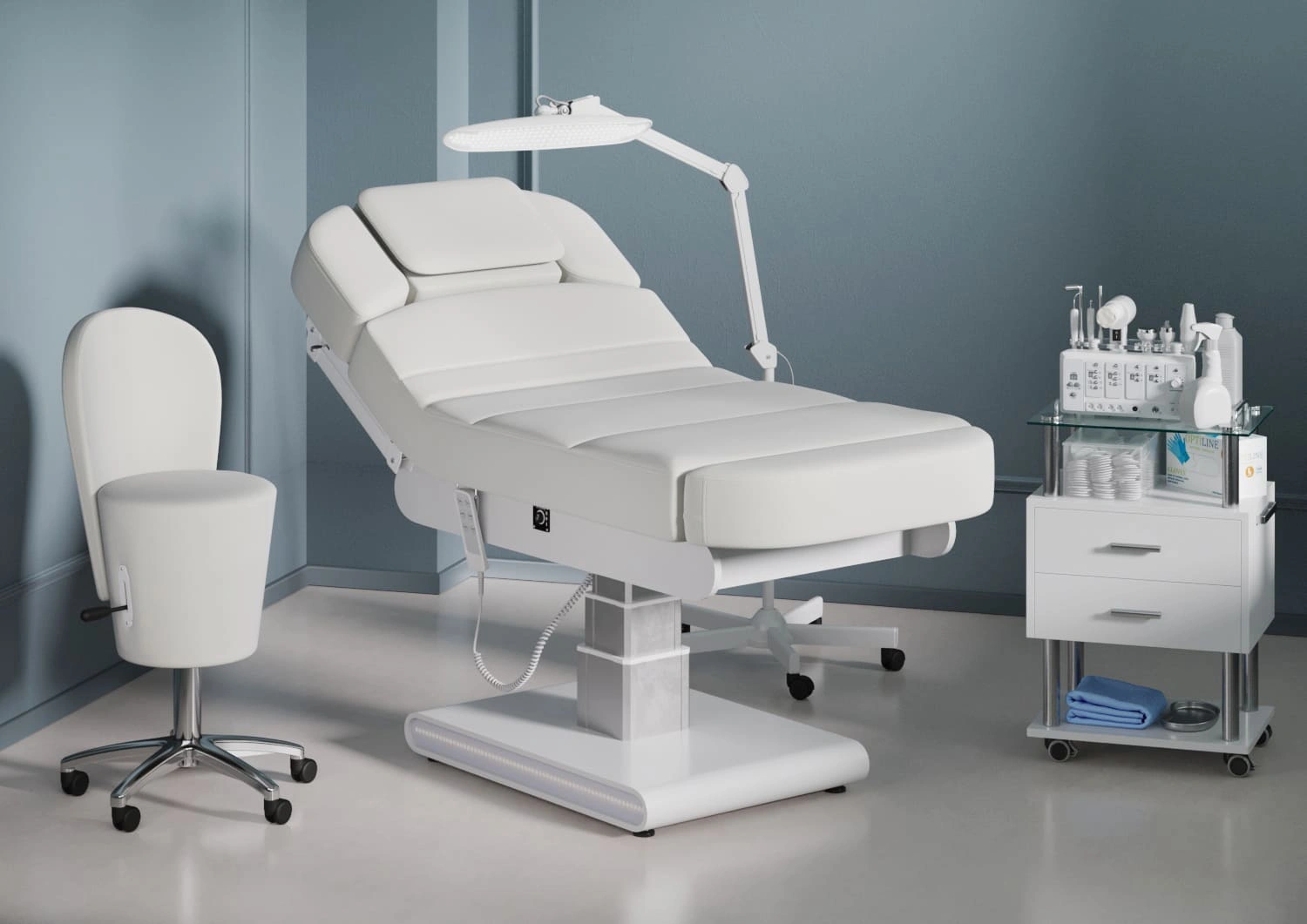 Стул мастера имеет устойчивое хромированное пятилучье с манёвренными колёсам, он без усилий перемещается и не занимает много пространства в салоне. Удобная регулировка высоты на боковой поверхности – можно поднимать/опускать стул, не вставая с него. Идеально подойдёт для косметологических и спа-салонов.