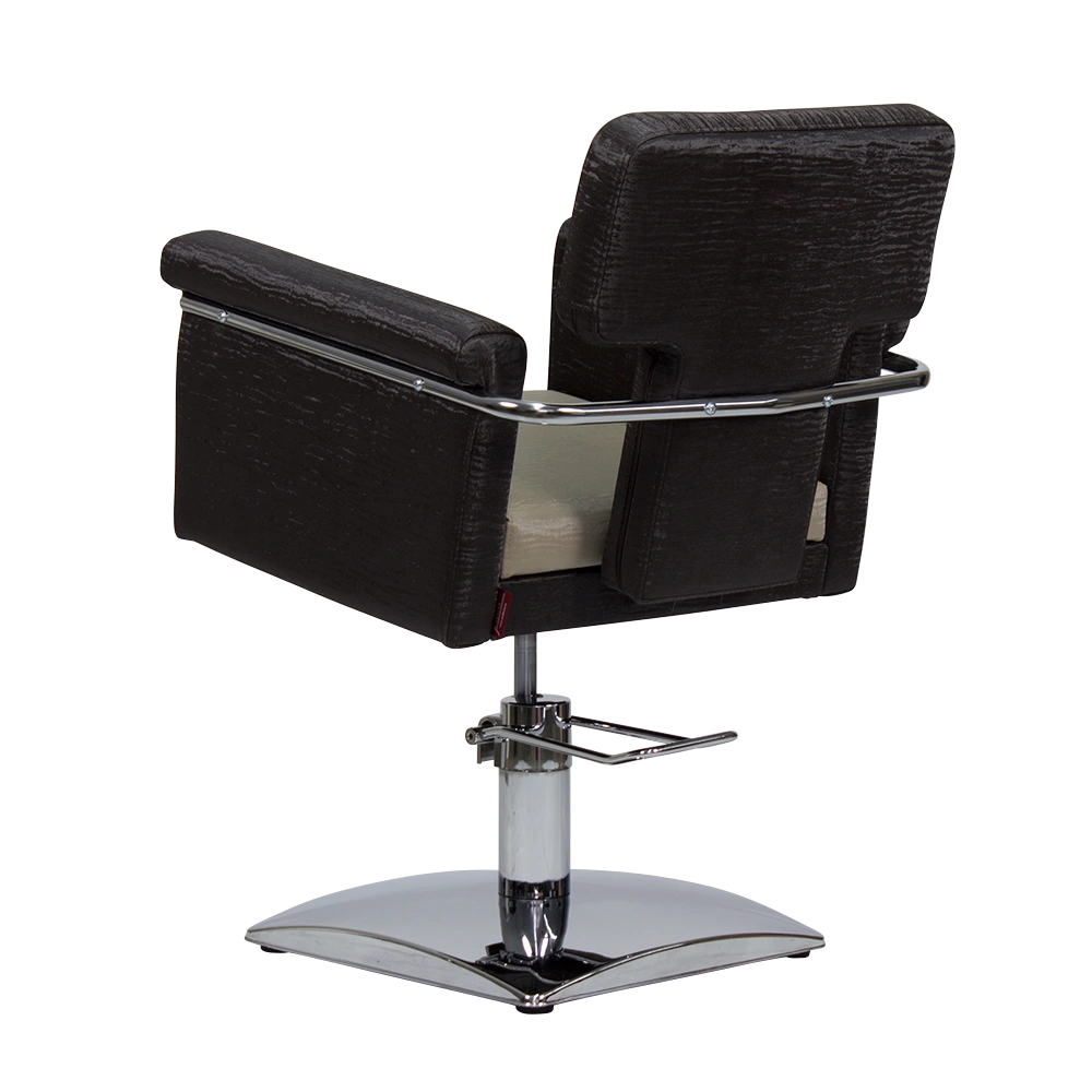 Парикмахерское кресло выполнено в классическом стиле, не имеет лишних деталей. Хромированная основа квадрат удачно сочетается с общей конструкцией кресла.