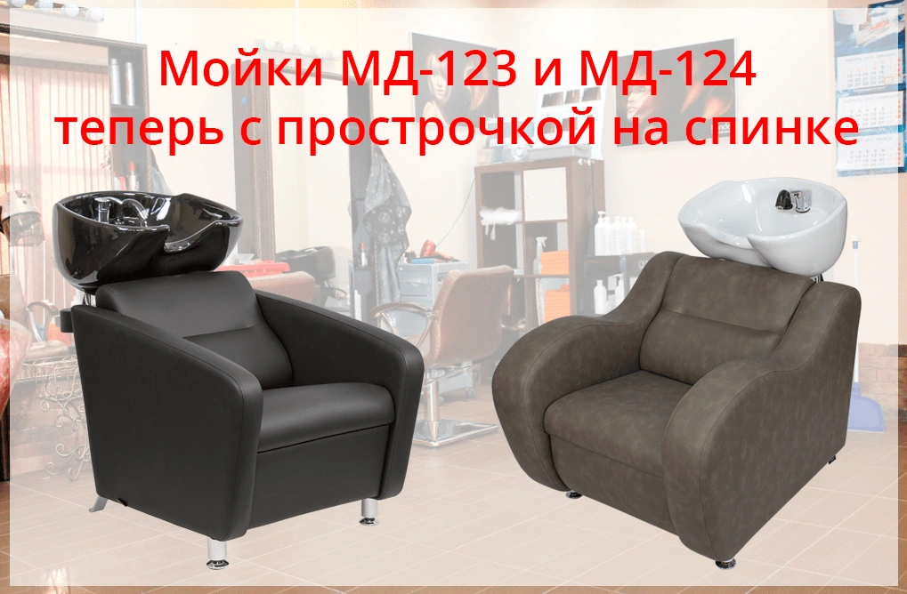 Сообщаем Вам, что мы улучшили дизайн парикмахерских моек МД-123 и МД-124. Теперь на спинке есть прострочка – это решение было вызвано функциональными особенностями кресла. Теперь мойки стали еще качественнее и сохранят привлекательный вид максимально долго.